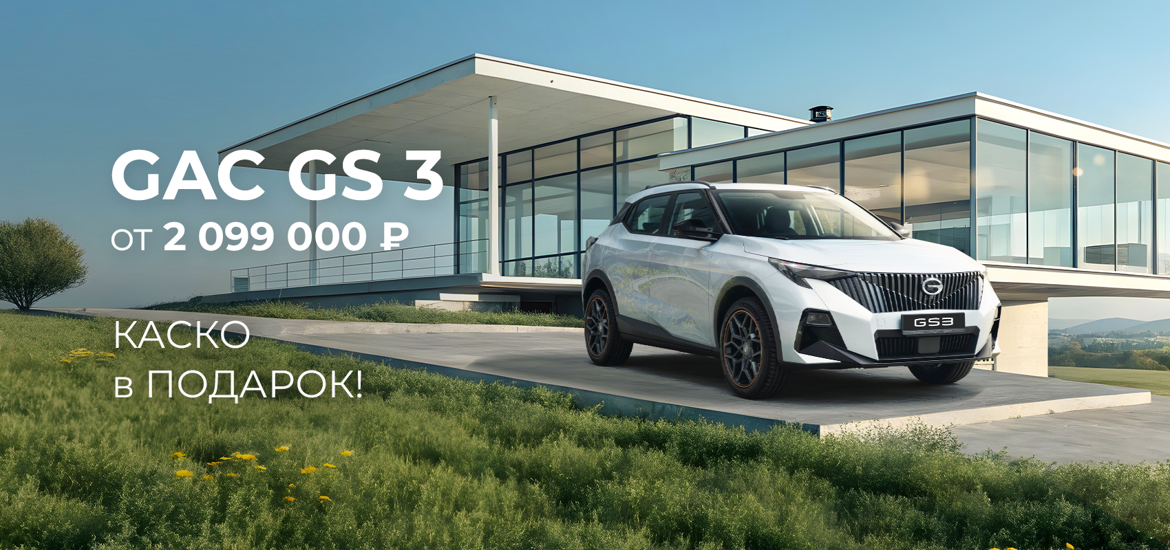 Стильный GAC GS3 от 2 099 000 р. Новый GAC GS3 - идеальное сочетание стиля, безопасности и технологий! GAC GS3 - это воплощение мощи и стиля на дороге. Оснащенный мощным двигателем и современной трансмиссией. GAC GS3 гарантирует мгновенный разгон и потрясающую динамику.| Только 10 дней действует специальное предложение: приобретите этот кроссовер по выгодной цене и получите дополнительные бонусы:
